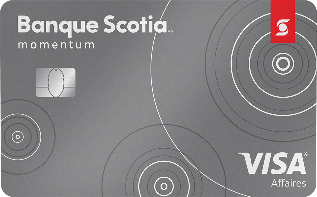 | Carte Visa* Momentum Scotia MD pour entreprise | notes juridiques (externe) | Stations-service, restaurants, fournitures de bureau et paiements périodiques notes juridiques (externe) | Autres achats courants notes juridiques (externe) | notes juridiques (externe) | notes juridiques (externe) | notes juridiques (externe) | Faites une demande pour Carte Visa* Momentum Scotia MD pour entreprise |
